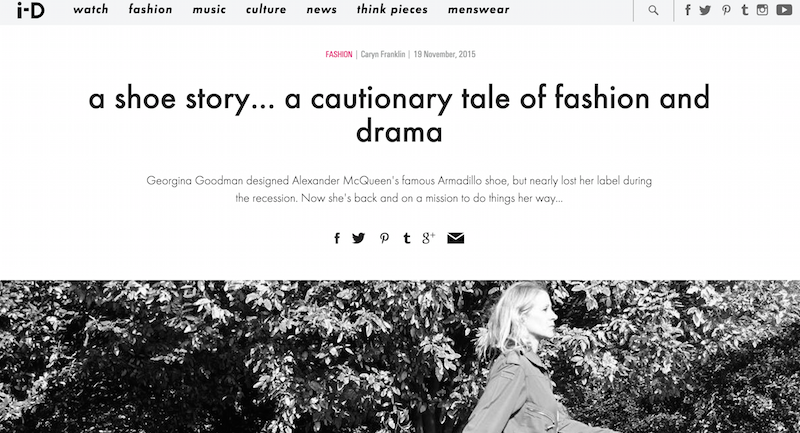 i-D Magazine. Shoe designer Georgina Goodman tells a right good yarn. Read feature here