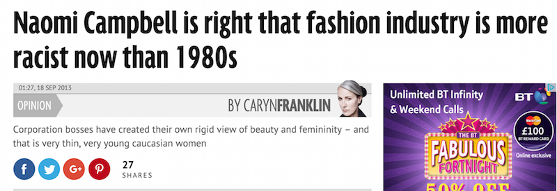 Daily Mirror. Supporting Naomi Campbell and her Diversity Coalition. Feature