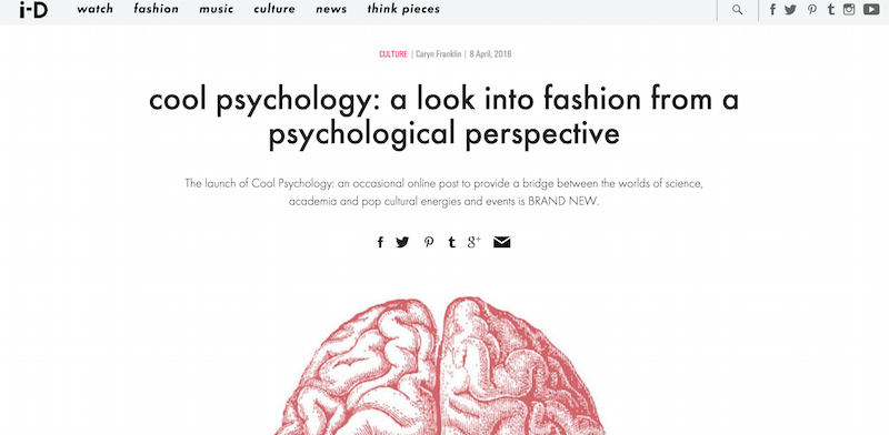 I've just launched a brand new feature 'Cool Psychology' with i-D Online. I'm super excited to use my newly acquired academic psychology skills to interview key people in this world and commission young writers to investigate all sorts of topics for a psychological perspective...Yup thats COOL alright! Feature