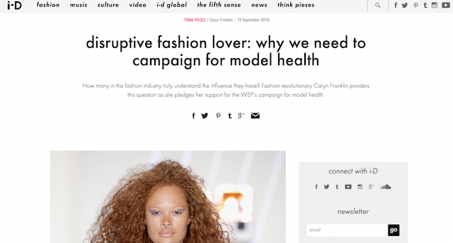 After consulting with the Women's Equality Party on the importance of protecting models from exploitative and unhealthy pressure around weight and appearance, I wrote my justification in where else? i-D of course. Feature