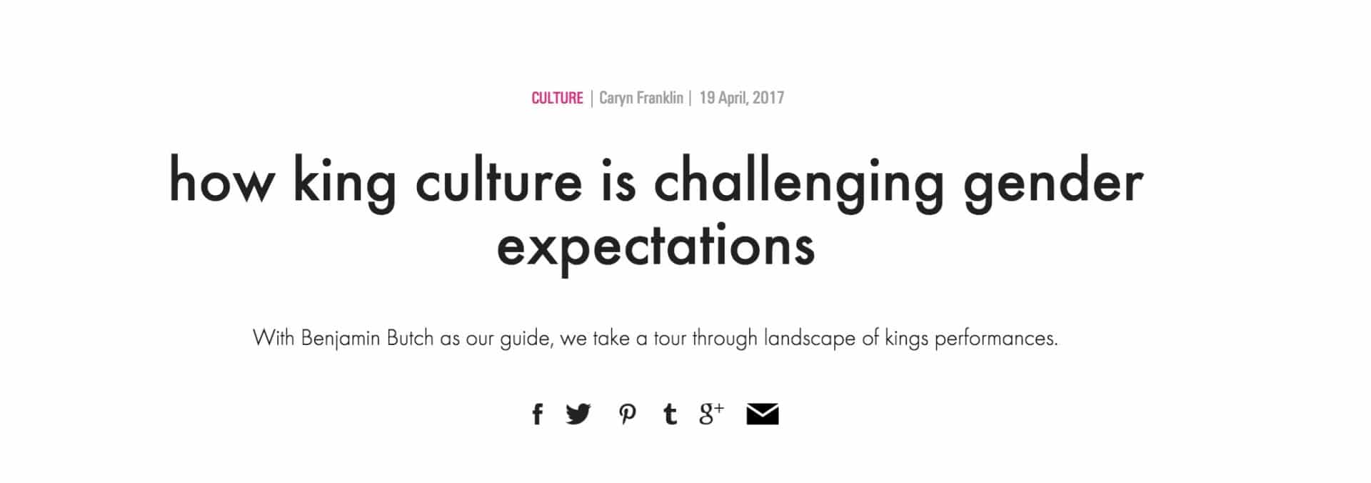 King Culture isn't women dressing up as men. That's ISN'T... It's a brilliant, funny, provocative and deeply political look at the performance of gender. Feature