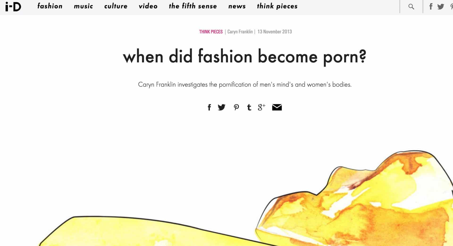 i-D Magazine. 'When did Fashion Become Porn?' Have we got a few Jimmy Saviles' in our industry too? Illustration Lizzie Anne Biggs Feature
