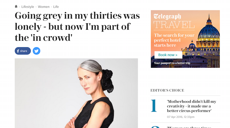 The Telegraph. Of all the positives I wrote about going grey, err...they still picked a negative title. Feature